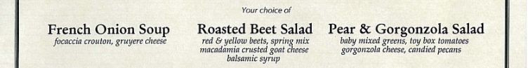 I had the onion soup for starter but it was just okay. Onion soup needs to be served piping hot out of the oven. Mine for just luke warm.. |