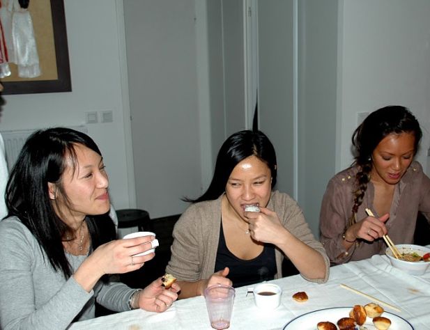 Anh Doan, Vieng, Thuan, Tuyet, and George took Hoa out for Dinner at a Chinese restaurant. Since they had a huge lunch and none of them were pretty hungry they settled down for a 3 course meal to start with Peking duck, the restaurant use the meat of the duck to make sweet and sour soup, and the Mi Xao.