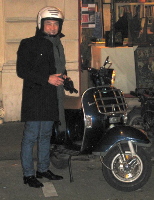 Tuan and Thoai pulling out their Vespa. Actually, Vespa is really convenient to drive around and so easy to park.