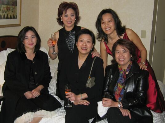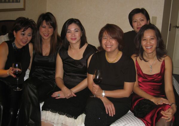 Mai-Ly, Ha, Huyen, Doan and I starting the cocktail party with a good glass of champagne and then we will move on to wine and appetizers.