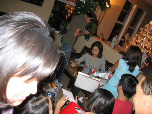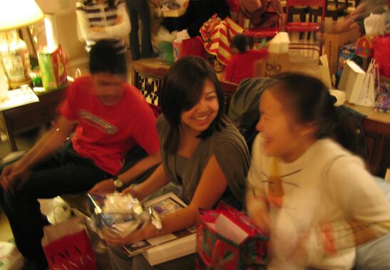 Brian, Tina and Vyvy openings a few of their presents |