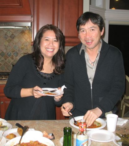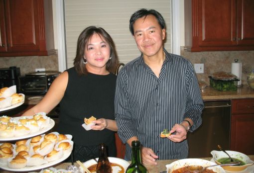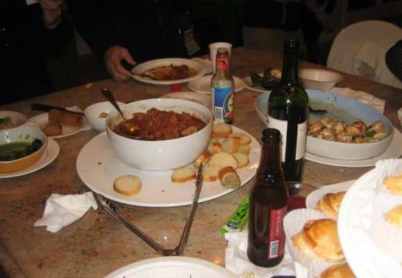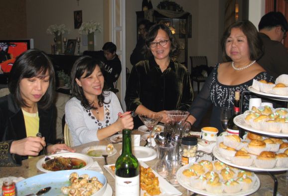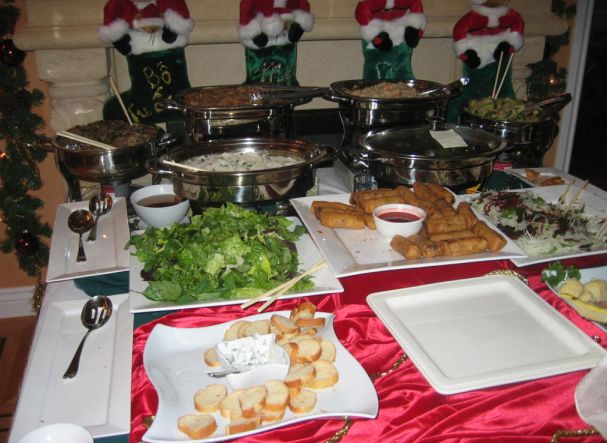 The appetizers are set up on the counter in the Kitchen. We had escargots, Pâté chaud, egg rolls, Chorizo with Apples etc...