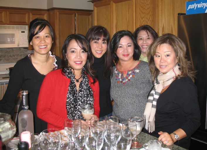 Me, Hanh, Thuy, Maily, Huyen, and Doan standing at the bar and ready to help ourselves wit a nice Christmas punch that Maily mixed specially for this occasion.