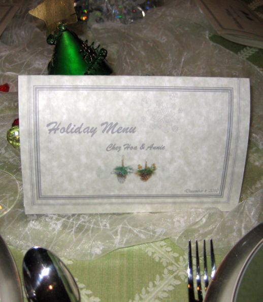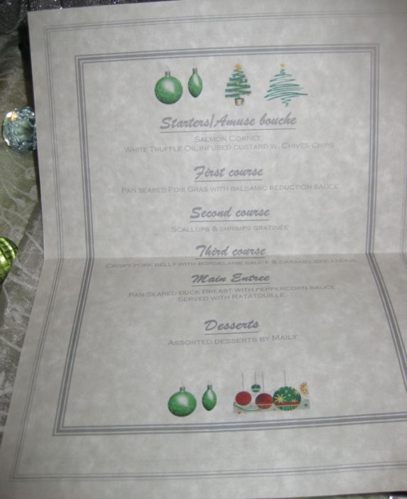 To create a little excitement and curiosity, I did not reveal the menu until it is time to sit down at the dinner table.