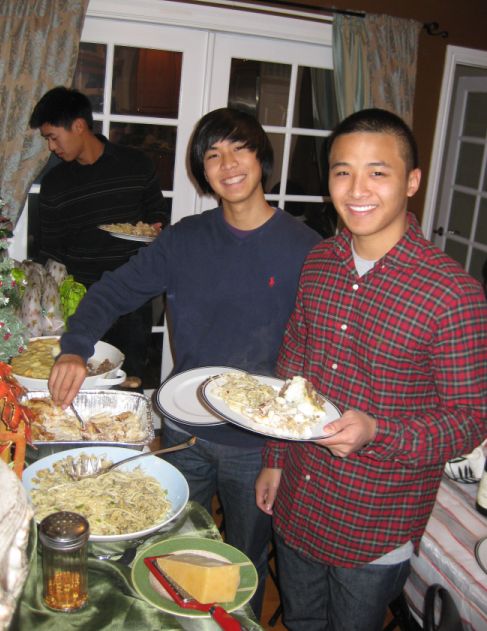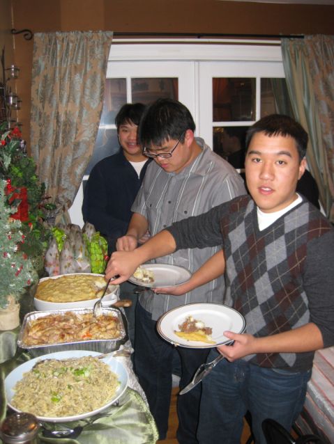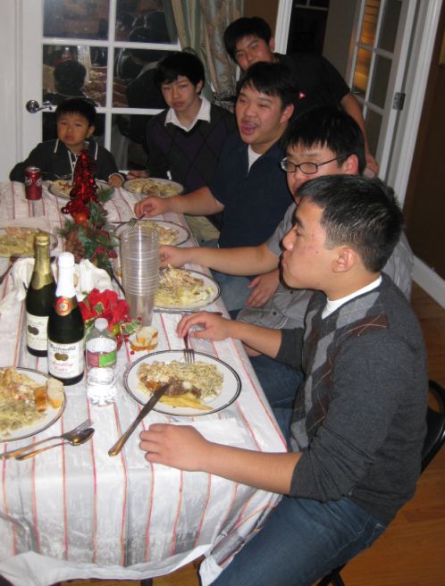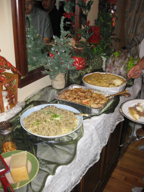 On the menu for the kids I made a Spaghetti with clams, a tray of Penne with chicken Scampi from Vito Restaurant and Hanh made a huge plate of chicken Sheppard pie. |