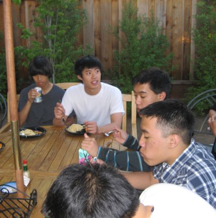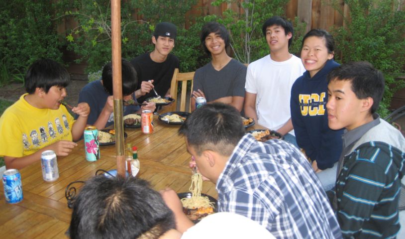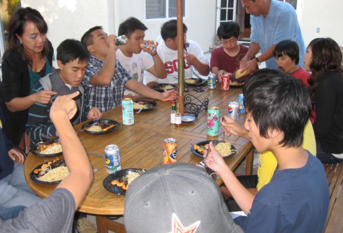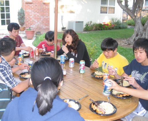 Hanh came and help to make sure the kids have everything they needed and Anh Dung went around the table to see if the kids wanted a few extra shaving of parmesan on their spaghetti.