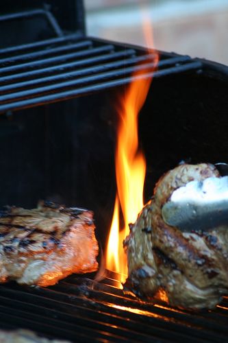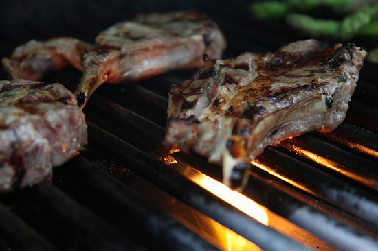 Hoa is throwing on the grill a bunch of racks of lamb! The good thing is they only take one minute per side to cook!