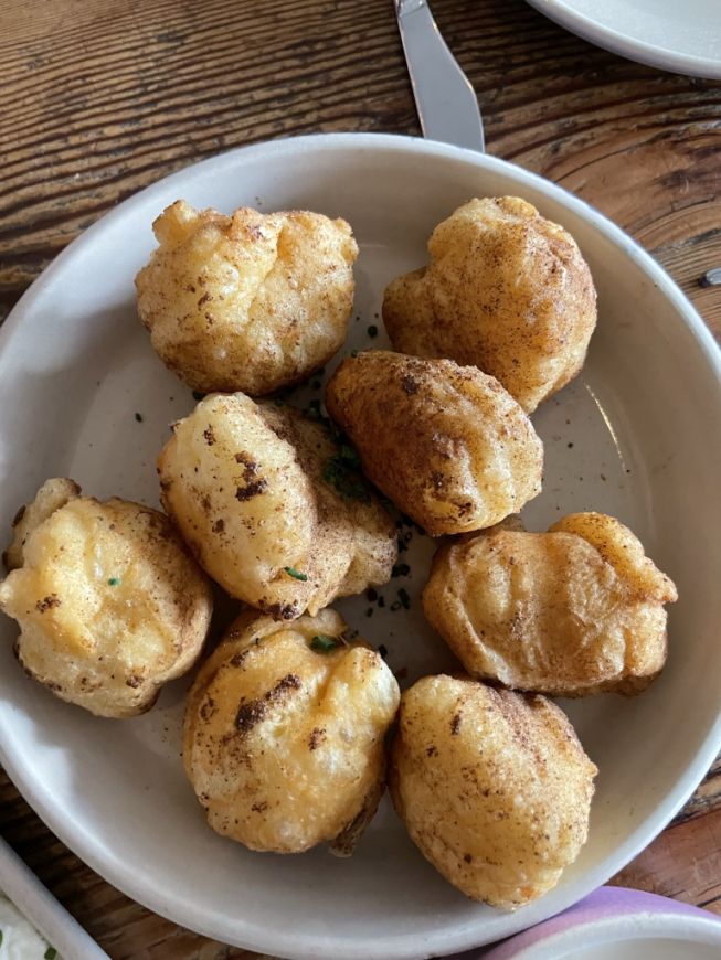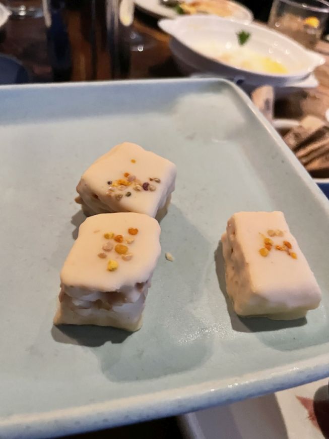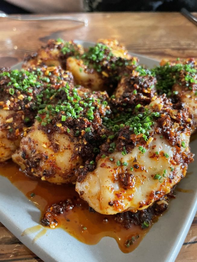 Asian influence but to our surprised, we all love this dish! The dumplings has a juicy beef filling and topped with a crispy chili sauce. It looks super spicy but it is actually not. Love the crunch on the chili sauce.