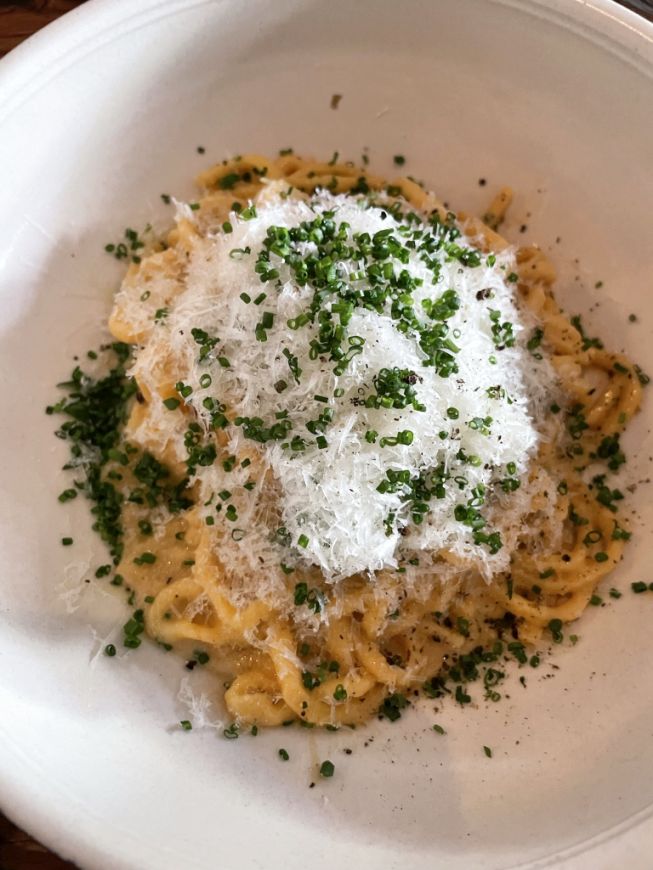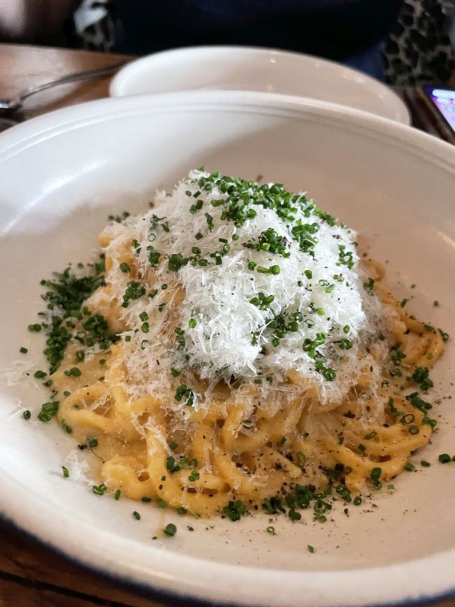 Tonnarelli, sea urchin cacio e pepe, Idiazabal