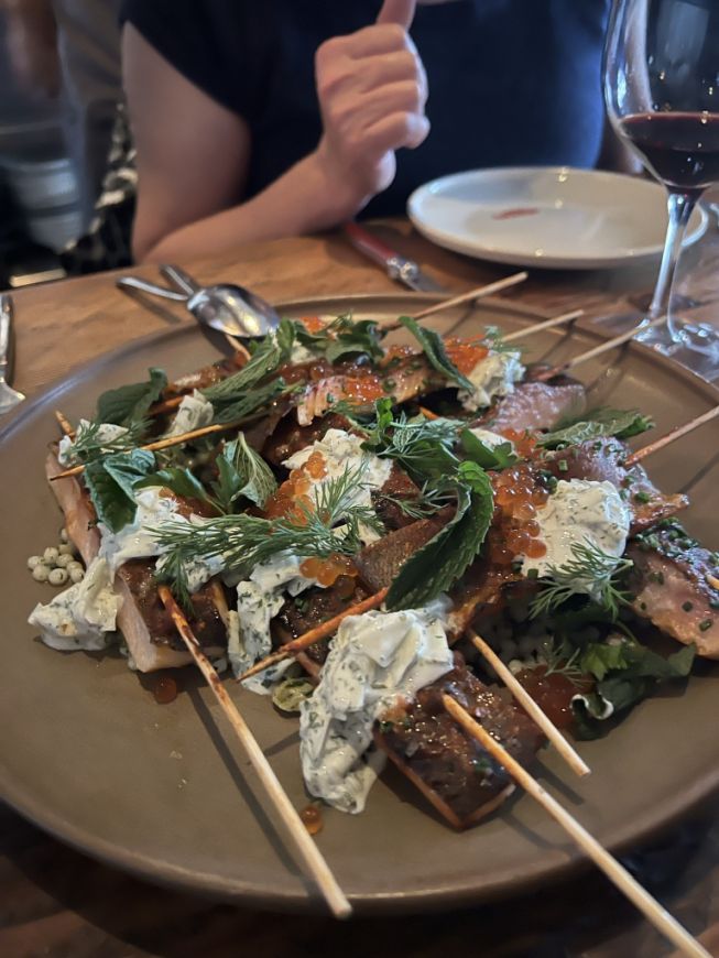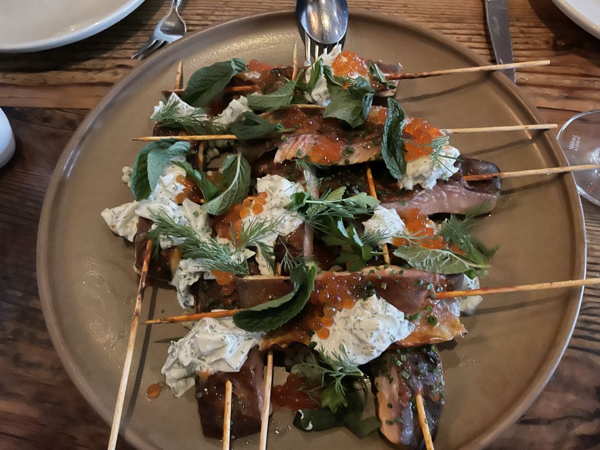 Grilled harissa trout, pearl couscous "Tabouleh", Kohlrabi Tzatziki, Ikura