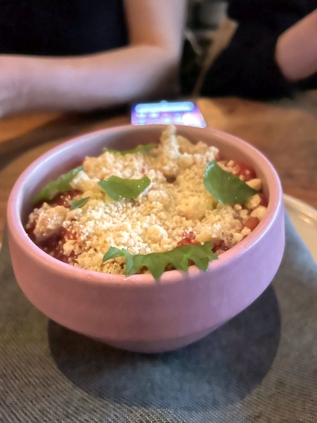 The dish is nicely plated . Greek influenced but it did not do much for me. Just an Ok dish.
