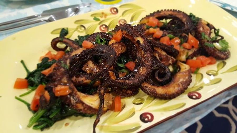Grilled octopus with sautéed spinach. I bought 3 octopus to make this dish.