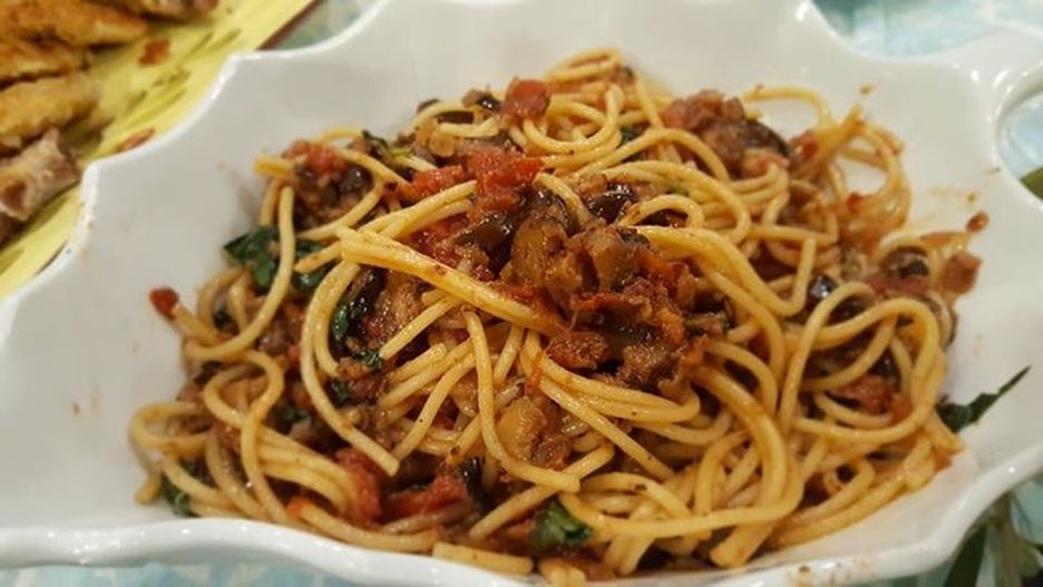 We travel from many regions is Sicily and each region has its own specialty, but expect to find a variety of pastas and dishes teeming with sardines, tuna, anchovies and prawns that are accented with capers, olives, herbs, pine nuts, pistachios, raisins and garlic. Eggplant, tomatoes, cheeses, mushrooms and Sicilian citrus are also popular ingredients. The most iconic pasta dish is pasta alla Norma, which is a Sicilian-Style Pasta with Eggplant, Tomatoes, and Ricotta Salata which will be on the menu tonight.
