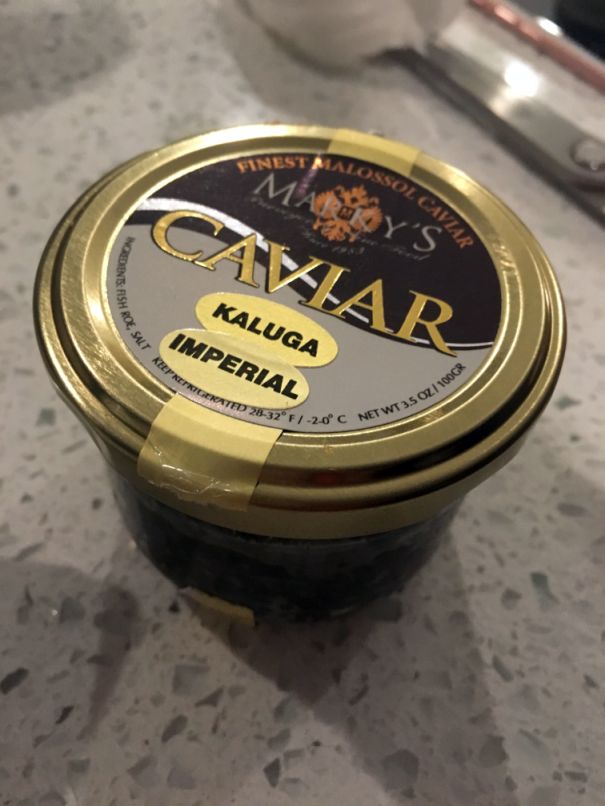 Phuc/Huyen brought two jars of Kaluga caviar for appetizers. Phuc/Huyen has a Russian patient that told them that in Russia people usually eat with bread and good butter.