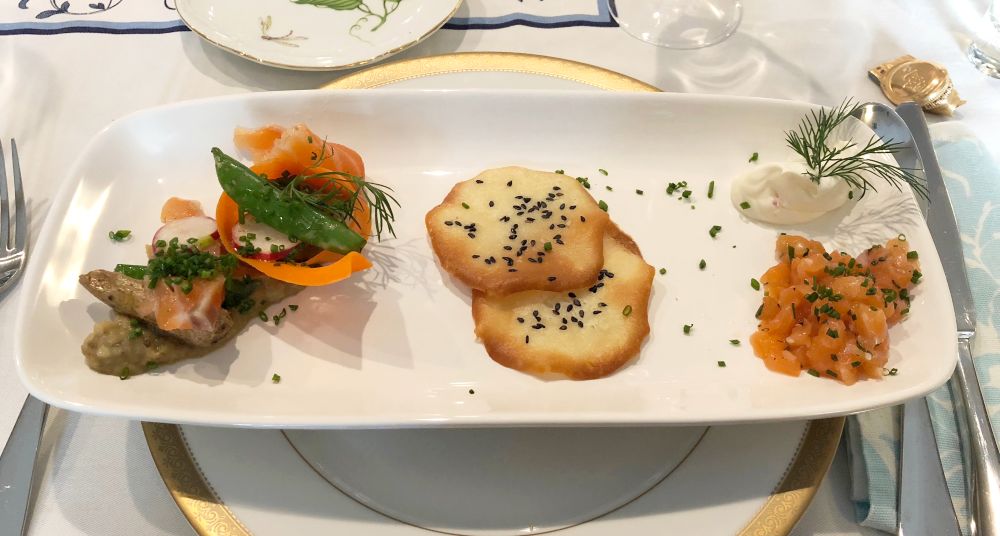 on the right: Salmon tartar and crème fraîche