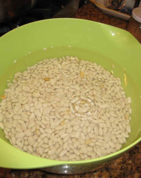 Put the beans into a large bowl and fill it with cold water. Let the beans soak overnight! |