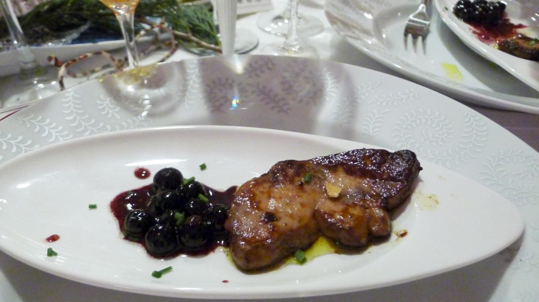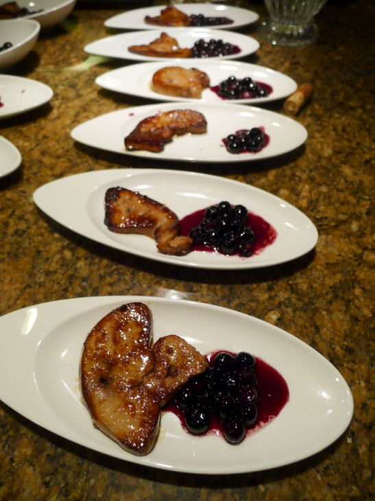 Here I am platting the foie gras with sautéed blueberries in butter and brown sugar. |