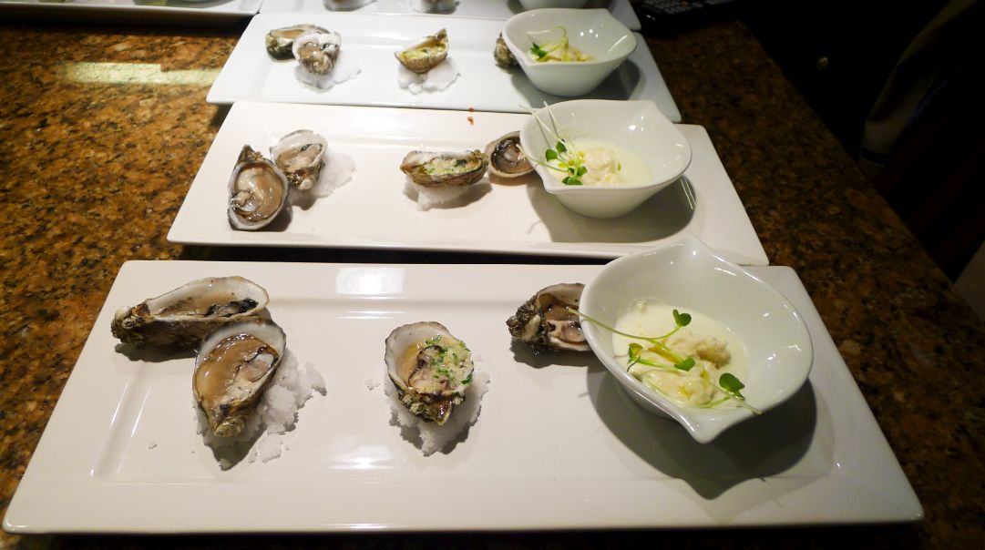 Everything is prepared ahead of time and all I needed to do is to bake the oysters (5 minutes), reheat my celery emulsion foam, and I am ready to plate.