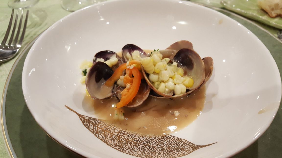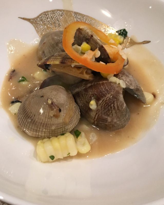Corn milk will thicken while cooking. This dish is also labor intensive but I enjoyed the sweetness of corn and brightness of the clams.