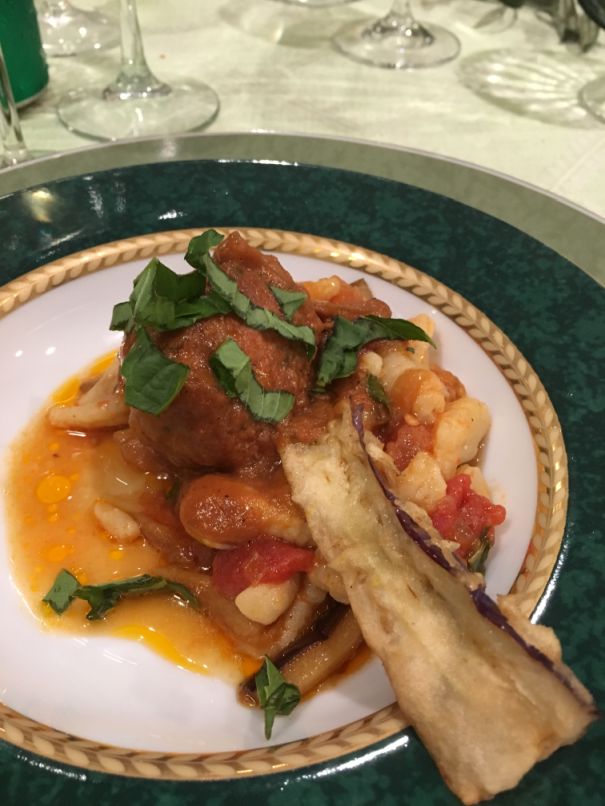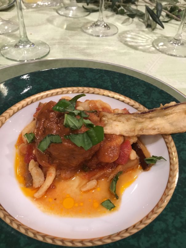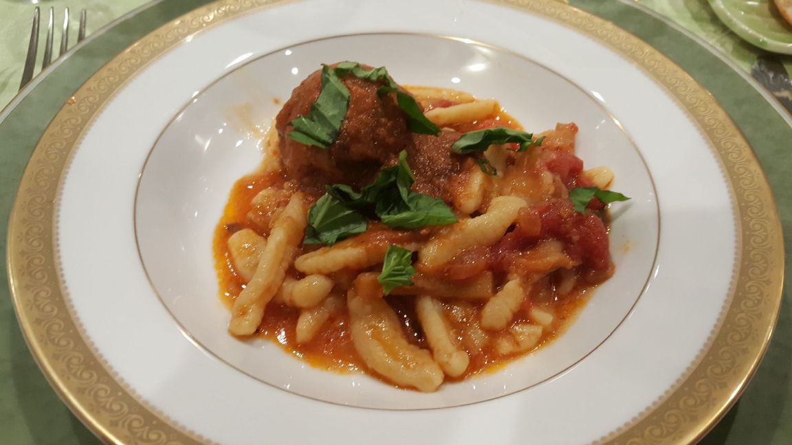 4- Home made cavatelli with chard meatballs and fried eggplant.