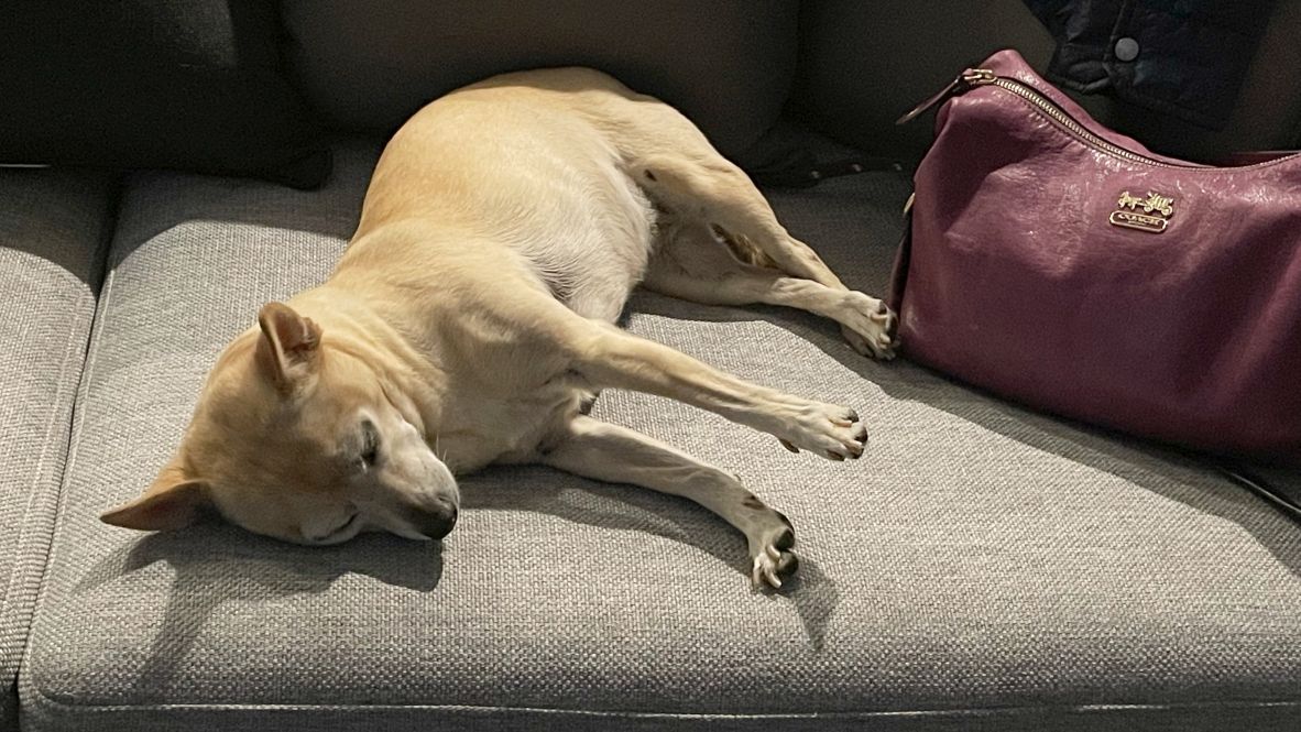 Basically, she was given a relaxing pill by mistake so she slept pretty much the whole evening. She is very food oriented but tonight she could not open her eyes.
