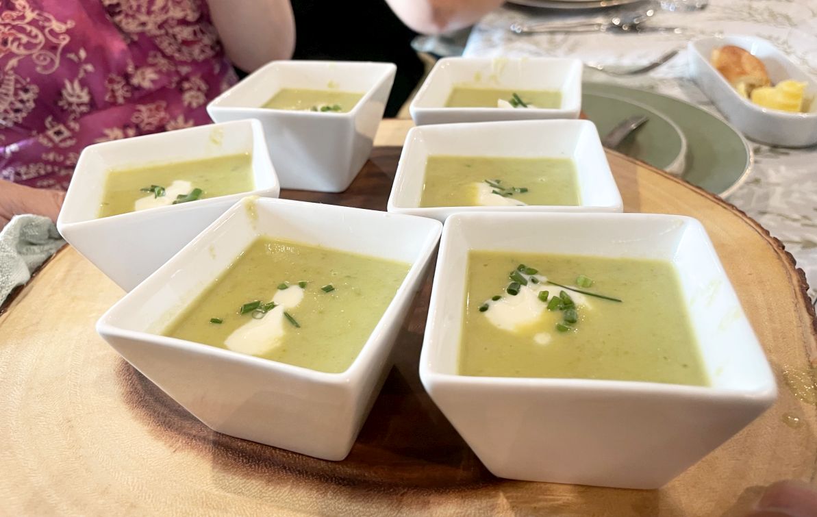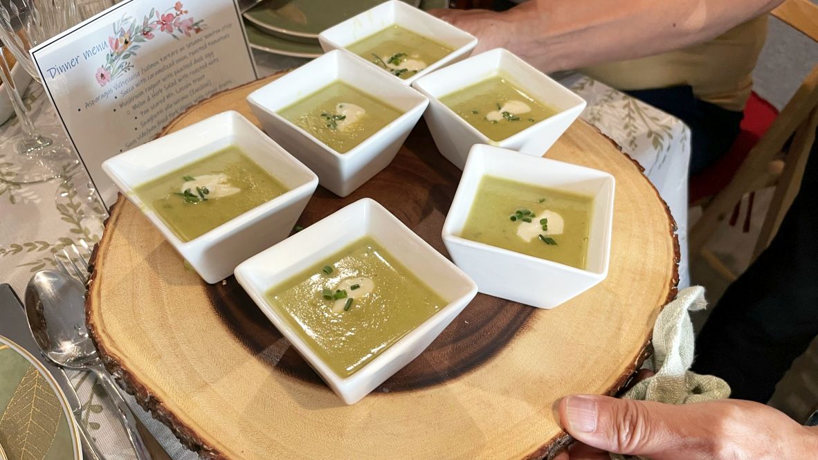 Asparagus vichyssoise with a doll up of crème fraiche.