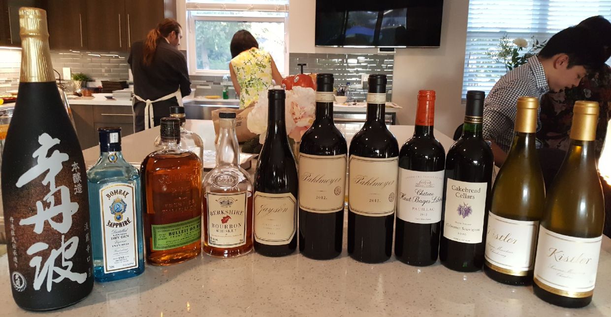 Sake, hard liquor for cocktail, red wine, and white wine for this evening.