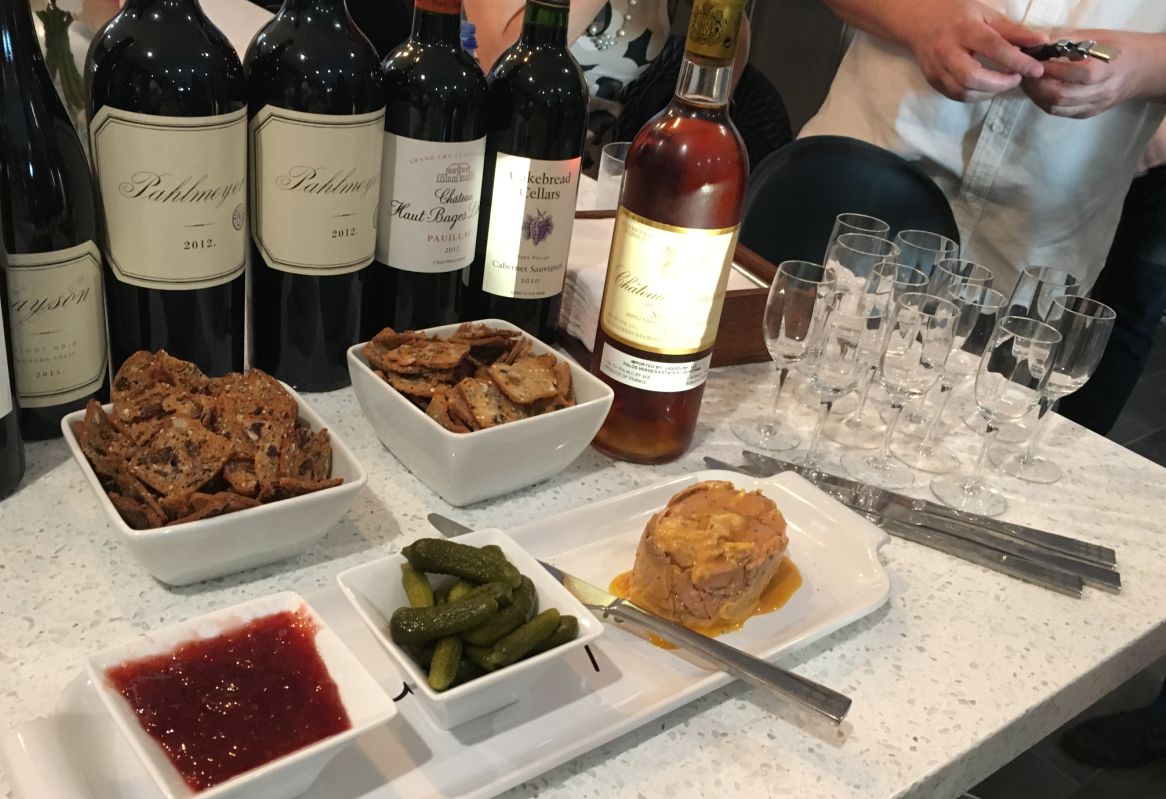 Doan and Tuan brought Foie gras, cornichon, fruit jam, and toasts to wash down with a glass of sauternes.