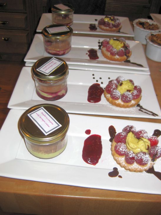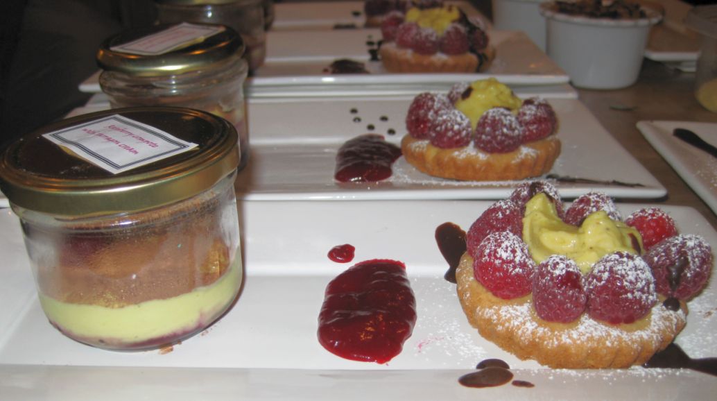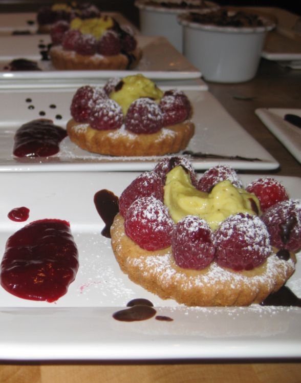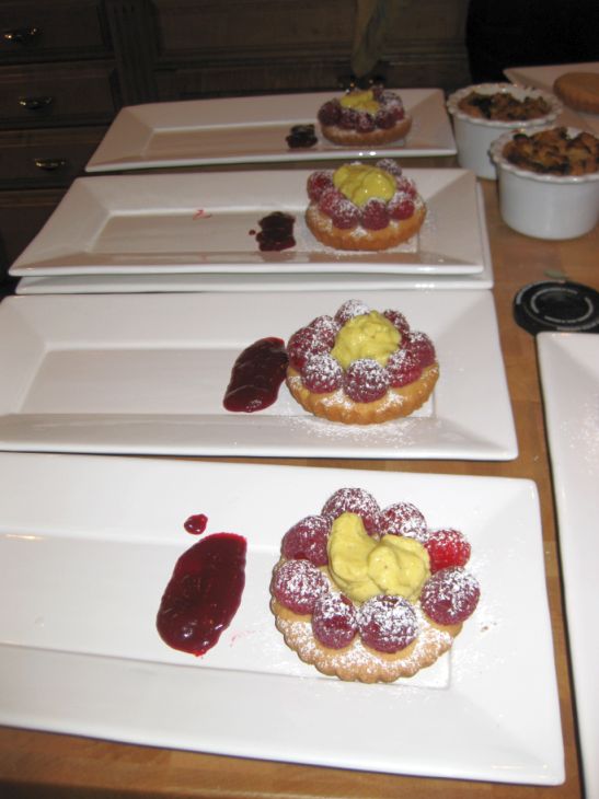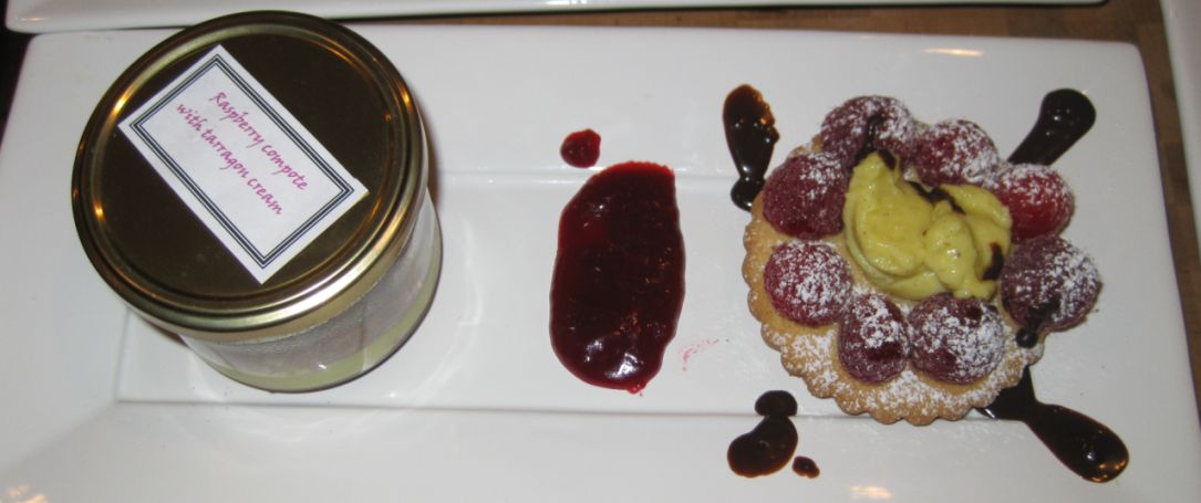 For desserts I served a Raspberry compote with tarragon cream together with Sablé Breton with raspberries, and vanilla cream. (click on link to see preparation work)
