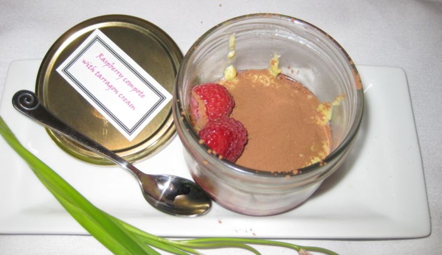 Raspberry compote with tarragon cream