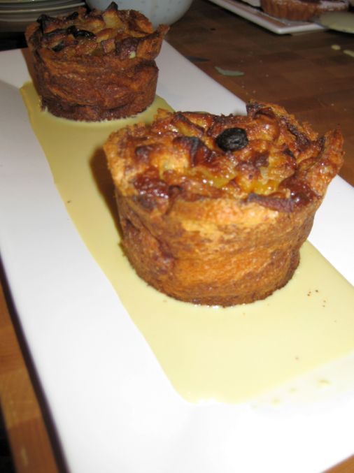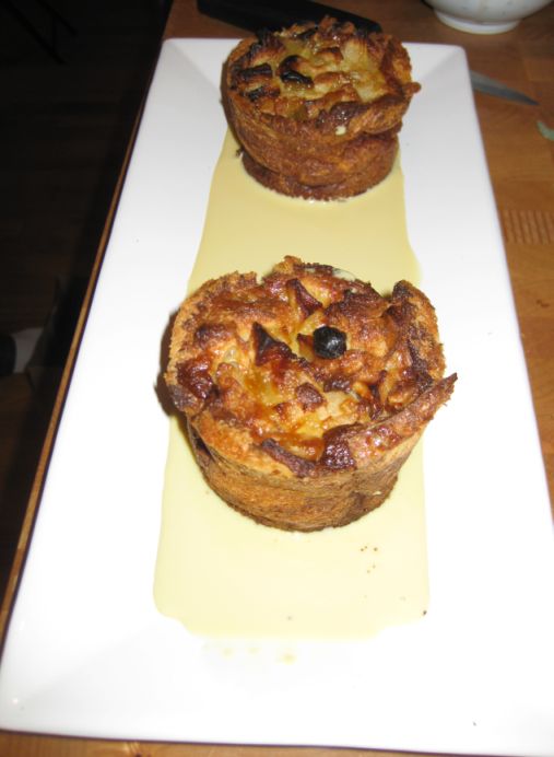 Maily made a Pudding with pears and raisin served with Creme Anglaise.