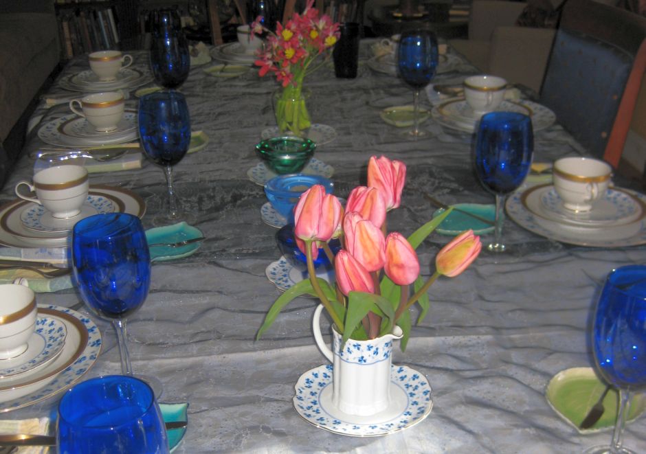 I bought some tulips and I also went out to our garden and cut a bunch of flowers and used them as center piece.