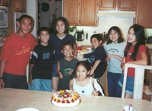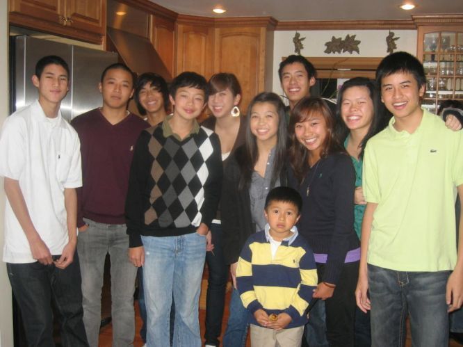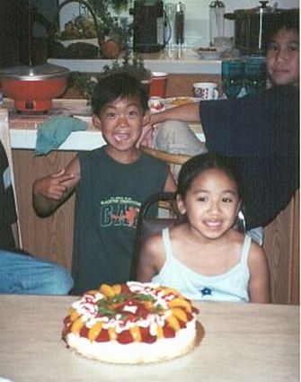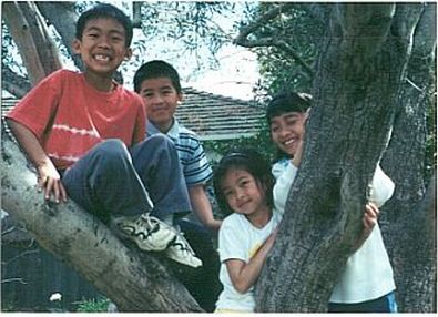Picture taken in our backyard when we just moved in our house. Kevin, Khang, Mai Chi and Tram. Kevin and Khang are 8 years old, Tram 9 years old and Mai Chi probably about 7. Kevin