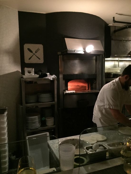The boisterous long, narrow restaurant features an open kitchen with a focus around the wood-burning oven integral to Neapolitan pizza.