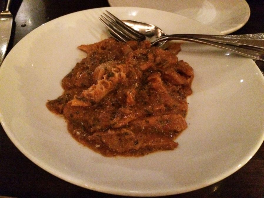Trippa Napoletana - Tripe, Tomato, Chili, white wine, breadcrumbs-$12