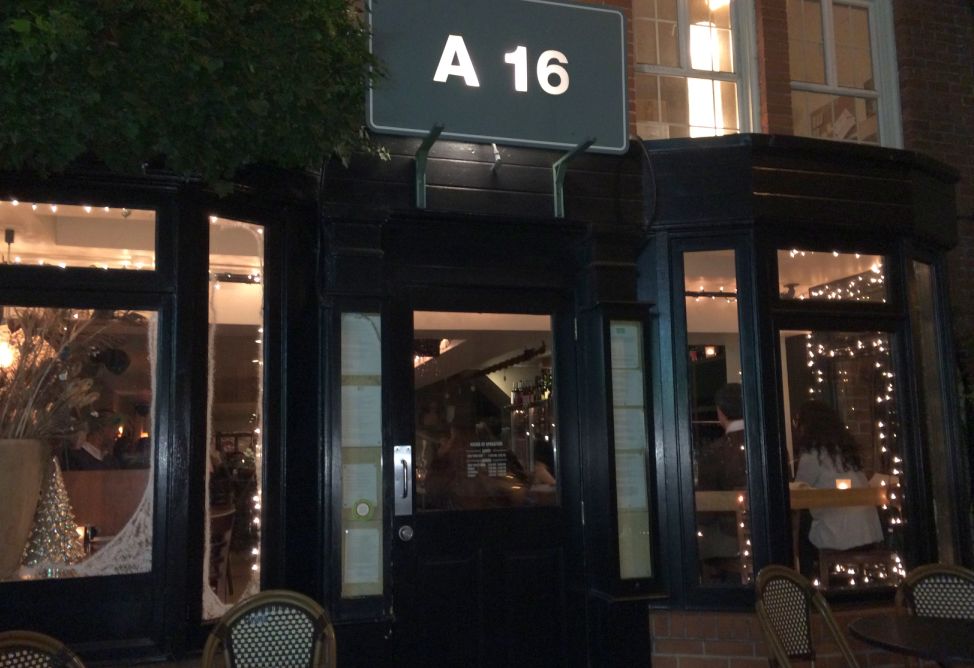 The entrance of the restaurant with the A16 sign on top is designed to look like a freeway sign.