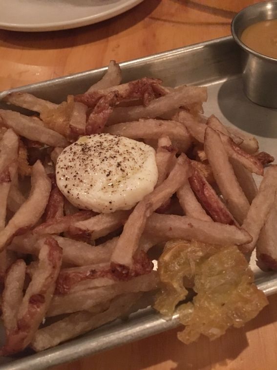 I read about the unique French fries at Al's place and they were like no other fries I’d ever tasted: the texture is totally different, slightly pickled, creamy in the middle, crunchy on the outside-cost $8 for the fries + $3 for poached egg. The poached egg was very lovely with the runny egg yolk and perfect with the fries.
