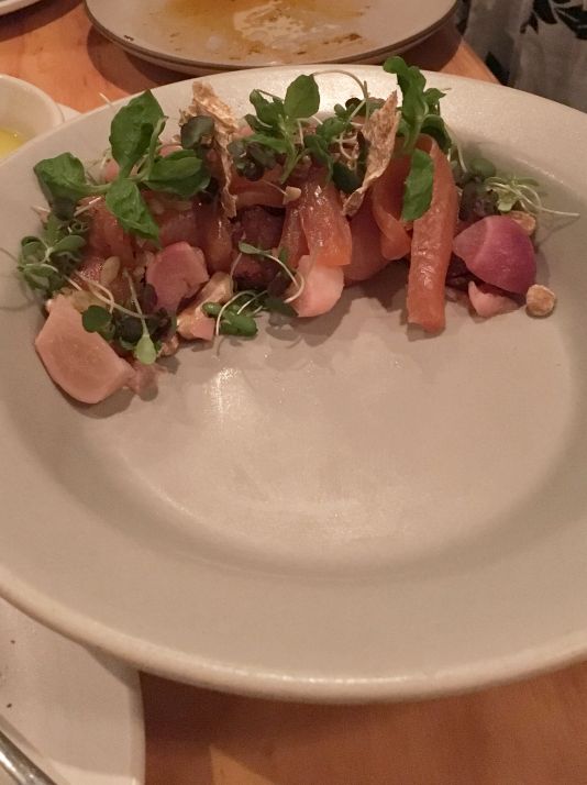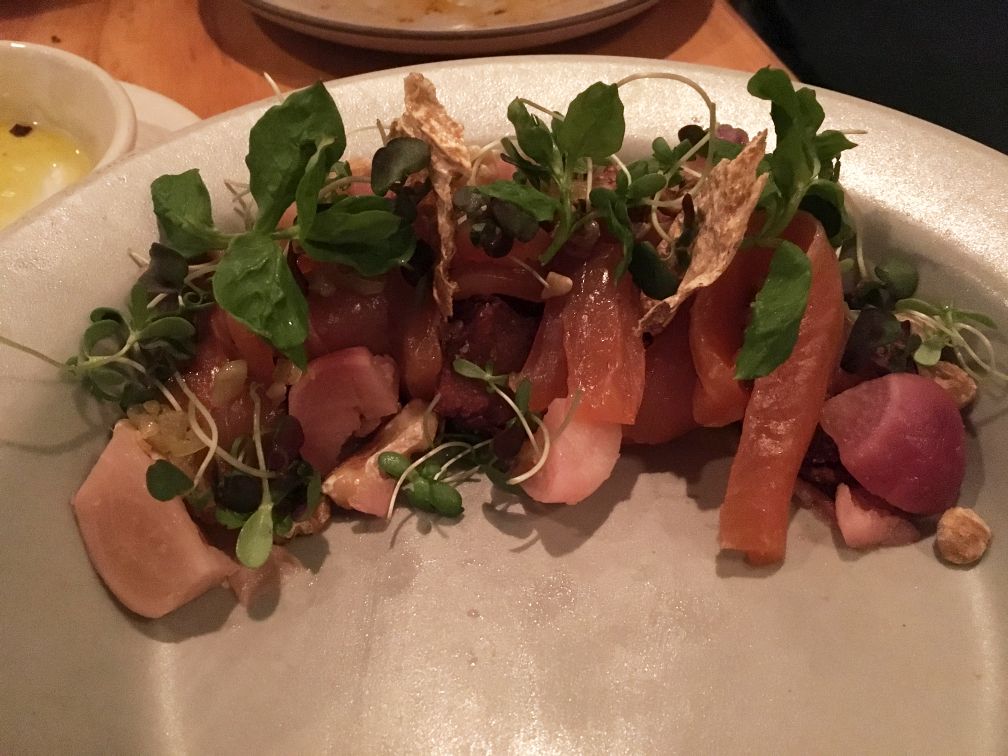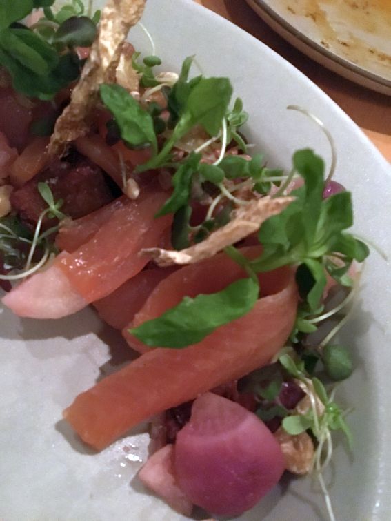 Lightly cured trout, crispy potato, bashed turnips, bagna cauda -$17
