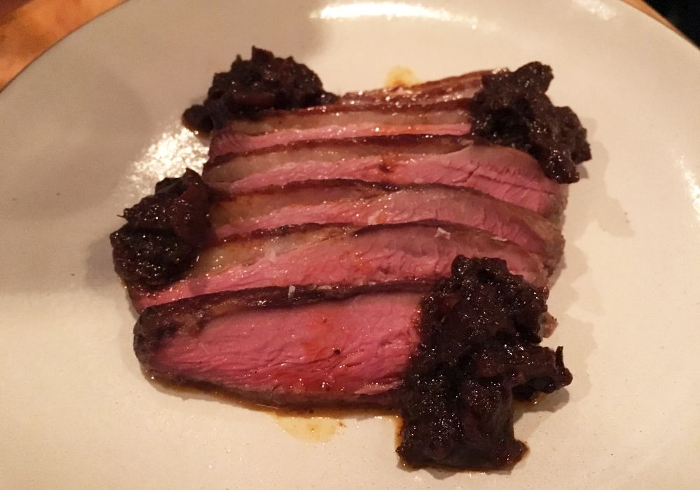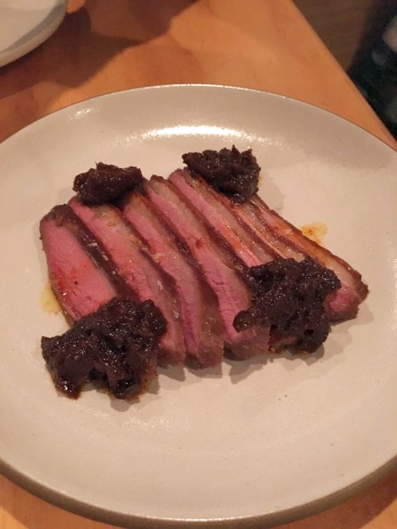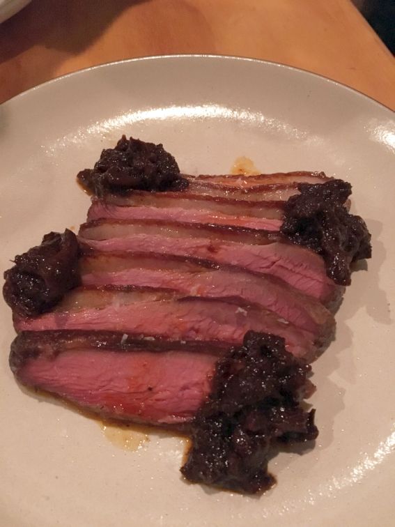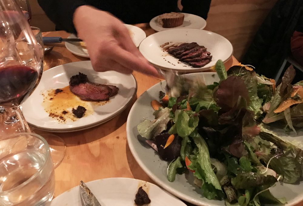 our table...here we are enjoying the duck, the ribeye, and the salad.