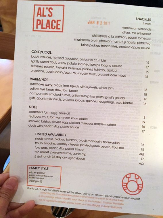 Al's place is known for their fresh, seasonal vegetables and seafood where Chef Aaron London has managed to deftly recast proteins in a supporting role.