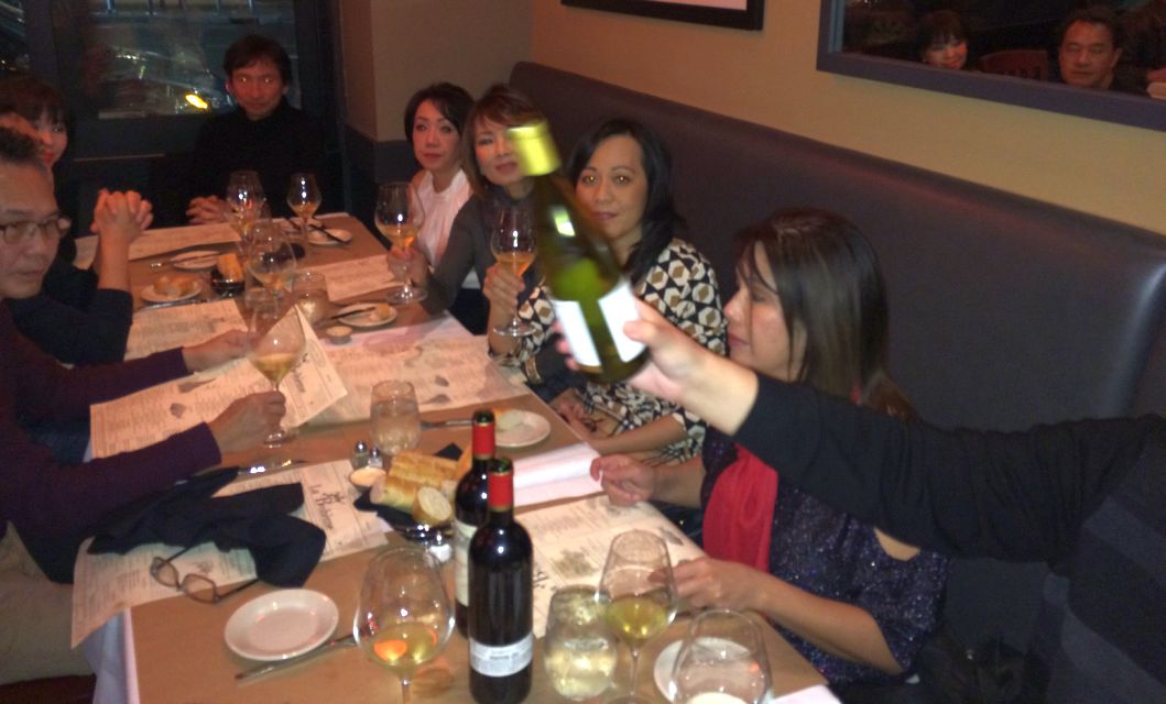 Phillip Leroy (far left) and Malek Kaci both co-owner took a picture with us. Philip loves French wine so Phuc brought some French wine tonight for us.