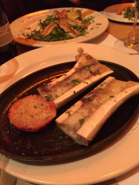 Os à Moelle gratiné façon Lutece (Breaded Bone Marrow gratiné with sea salt and served with a baked tomato)-$14 |