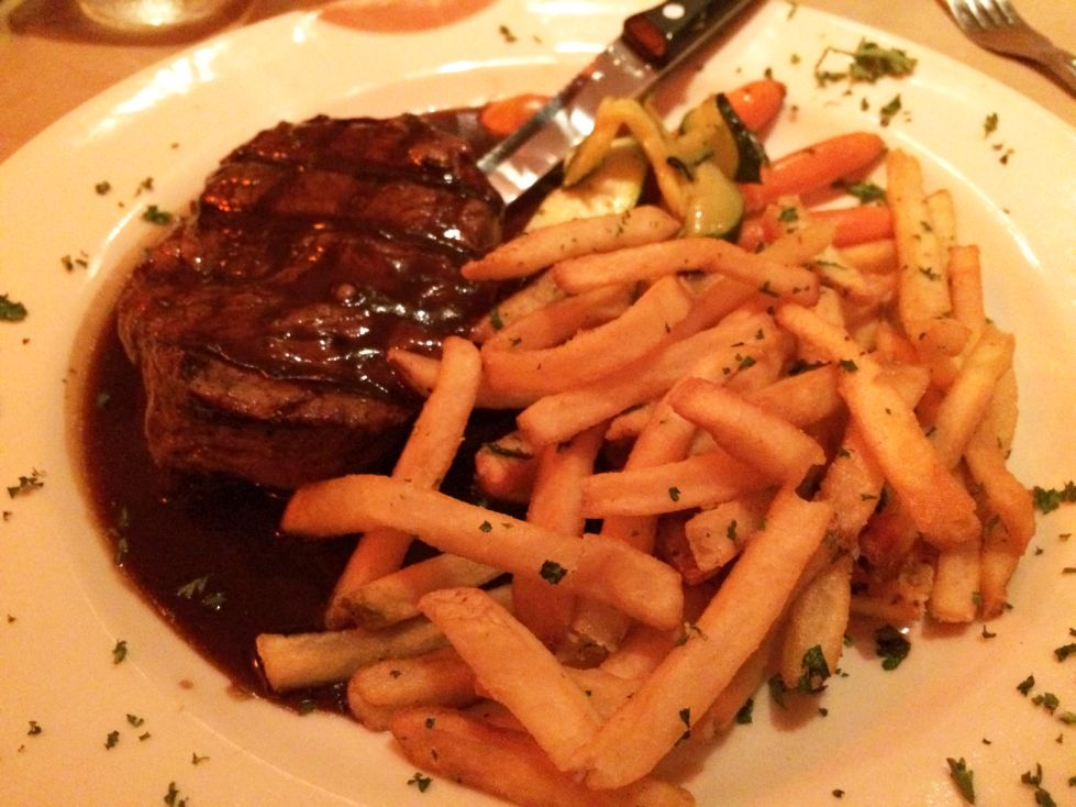 Hoa said the steak was decent, the French fries could been a bit more crispier.