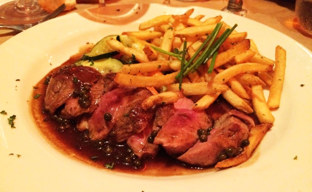 Magret de Canard (Grilled duck breast with green pepper sauce)-$25