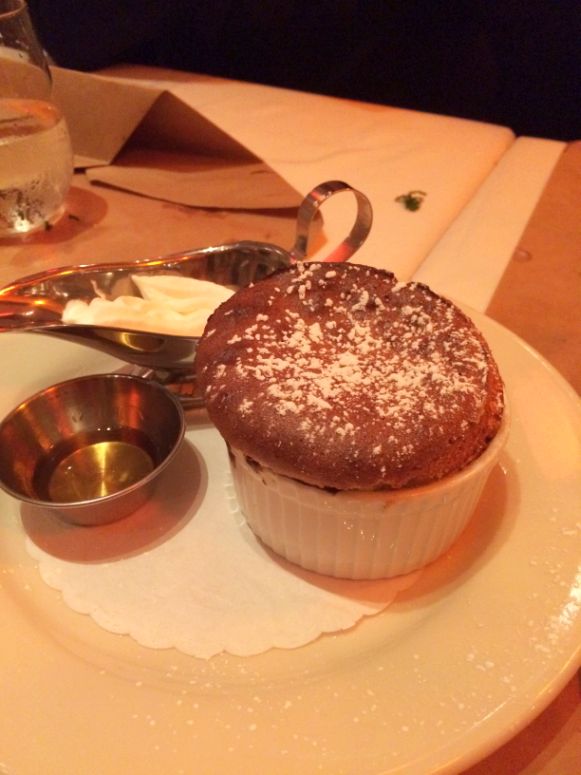 The soufflé came with a shot of Grand Marnier and whipped cream.