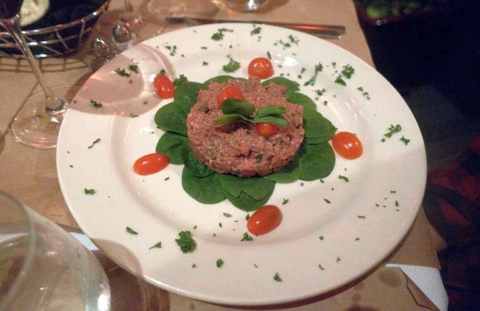 Tartare de La Vilette (Finely minced uncooked lean beef in a marinade of eggs, onions, capers, cornichons and spices)- $27
