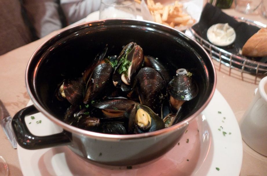 Moules Frites (Mussels in garlic white wine sauce served with French Fries)-$16