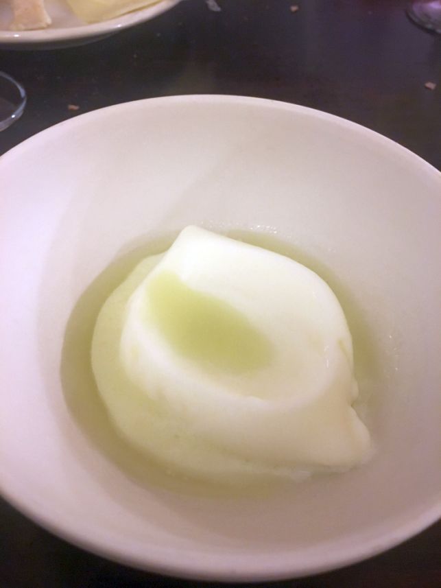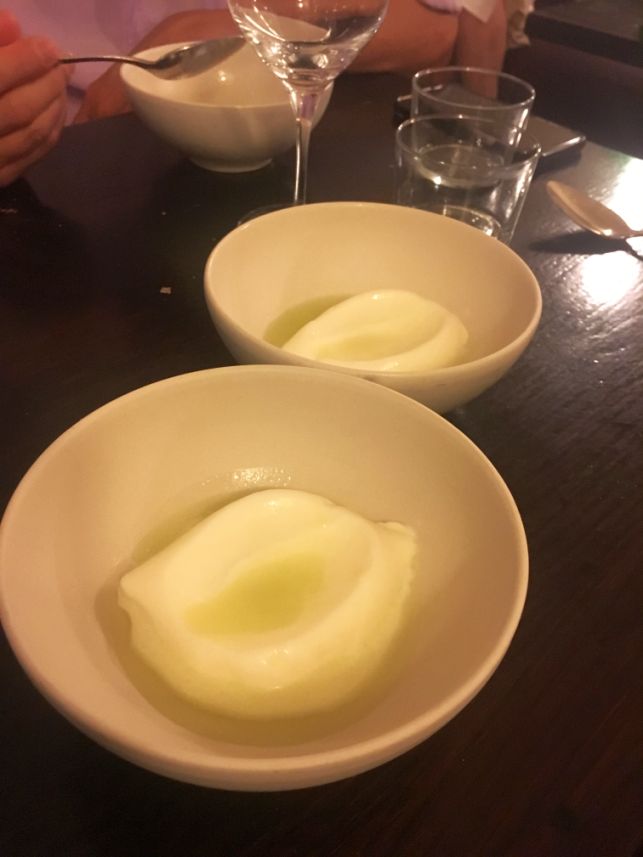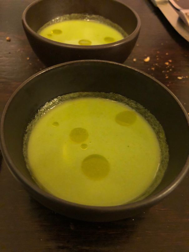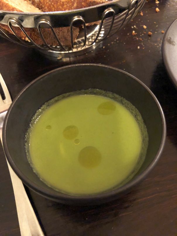 In the 5th and final amuse bouche is Pea soup with olive oil