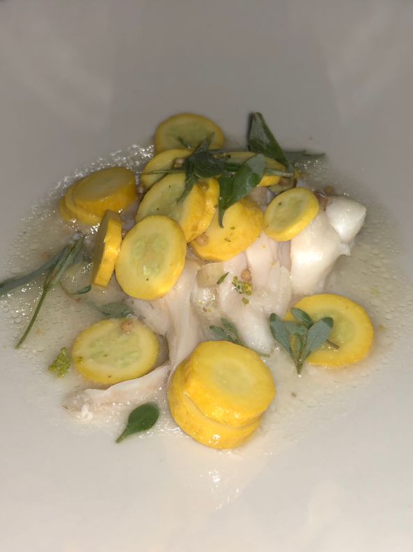Roasted fish with zucchini(I cannot remember the name of the fish).