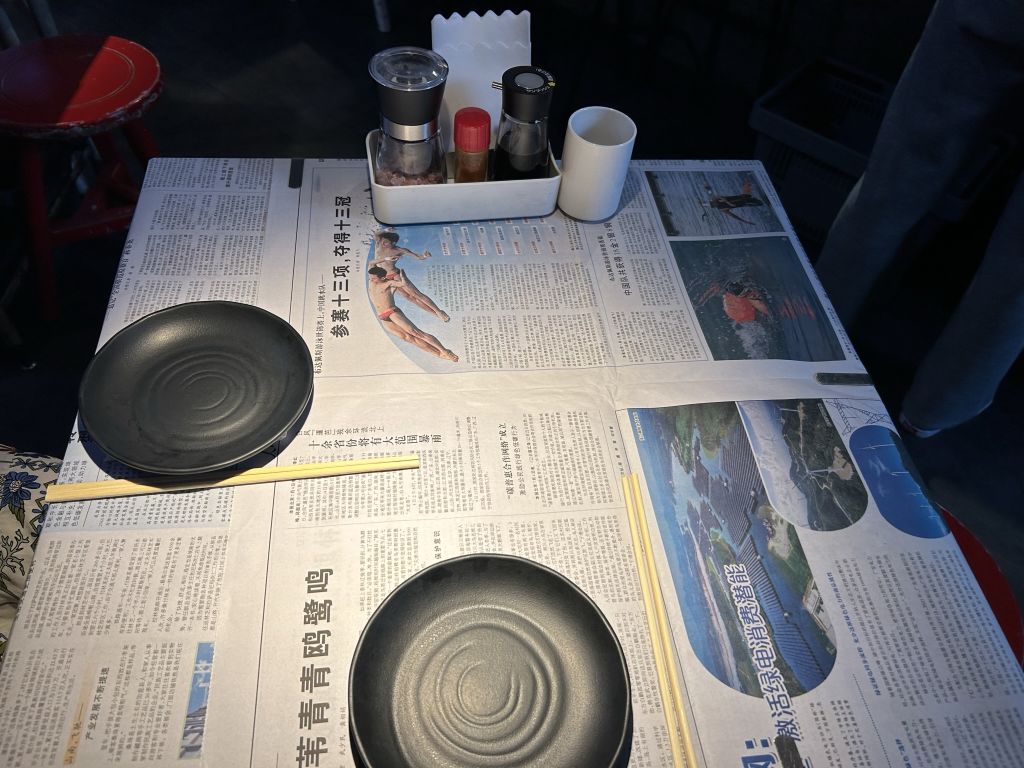 Simple tale set up. They covered the table with Newspapers and once the meal is over they just throw it away.